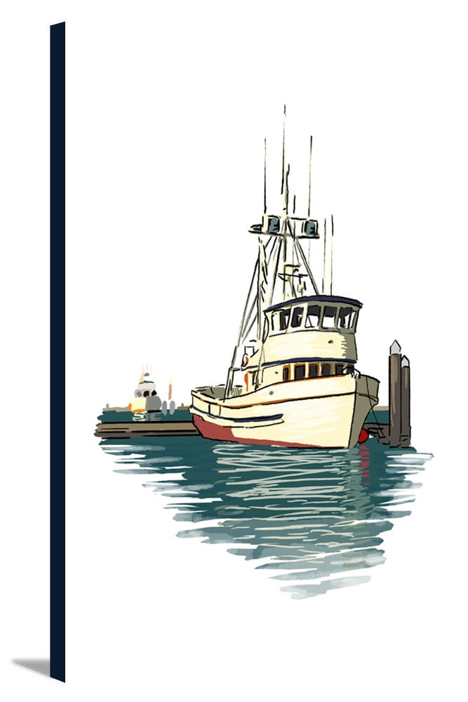 Fishing Boat Pier Icon Lantern Press Artwork 12x18 Gallery Wrapped Stretched Canvas Walmart Com
